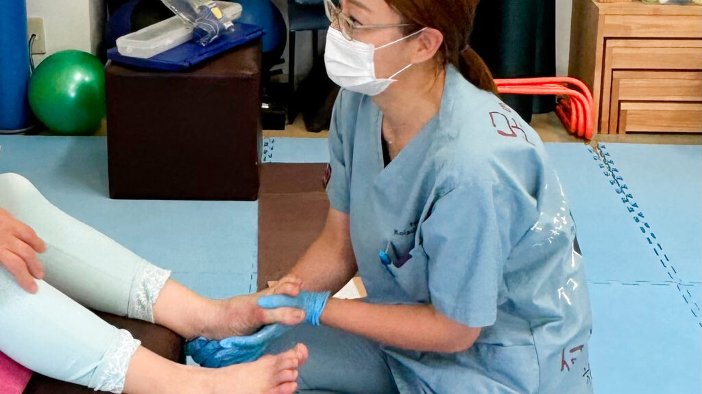 ケアの時間中は、担当の看護師がそばで寄り添いながら、 体調や日常のお話に耳を傾け、安心してお過ごしいただける雰囲気を大切にしています。 「話を聞いてもらえるのがうれしい」「心まで軽くなった」と感じていただける時間も、このケアの大切な一部です。